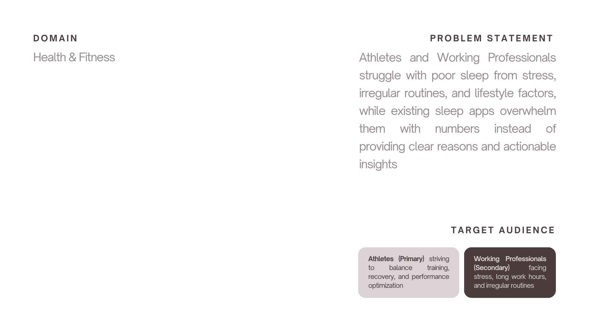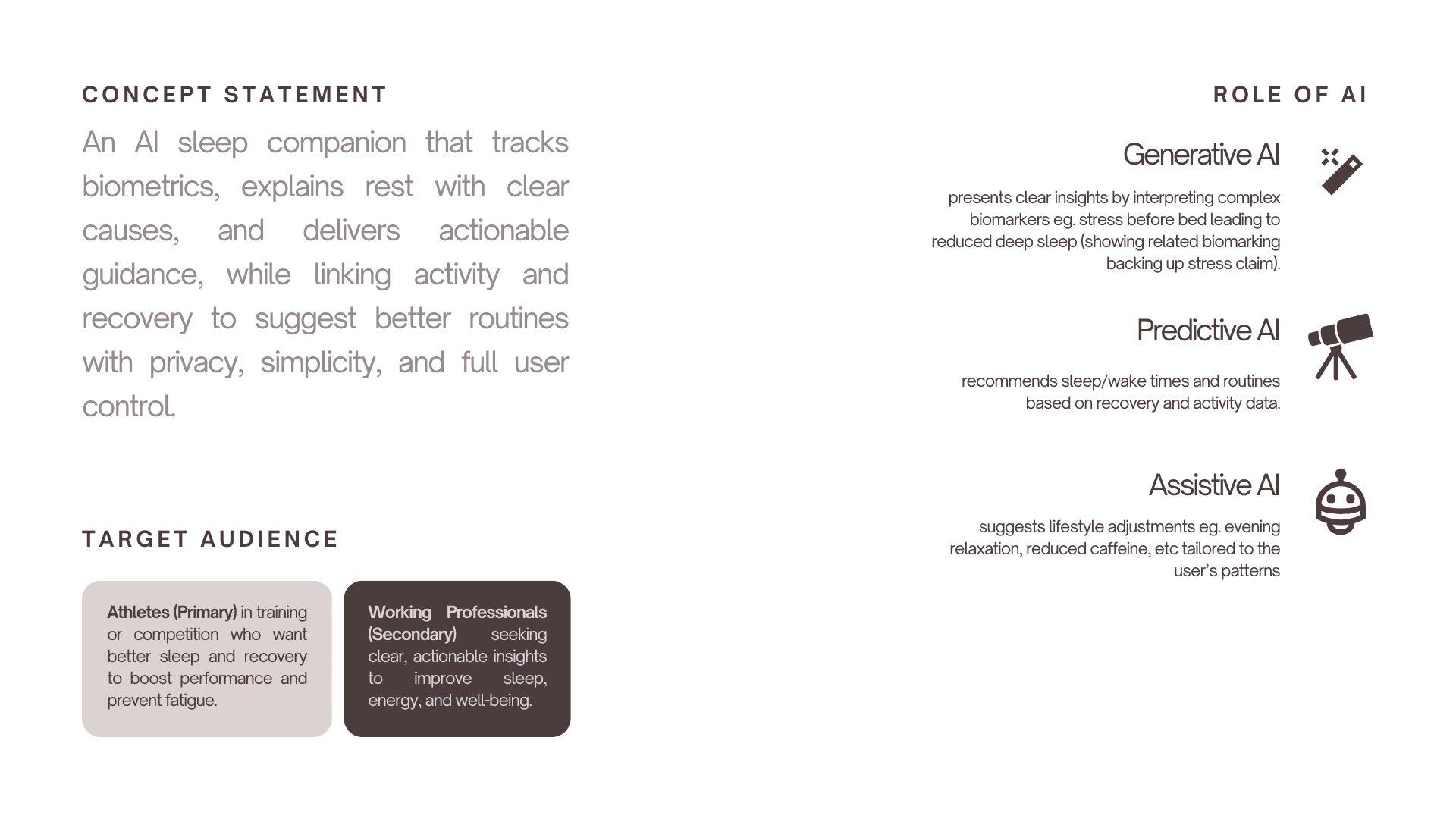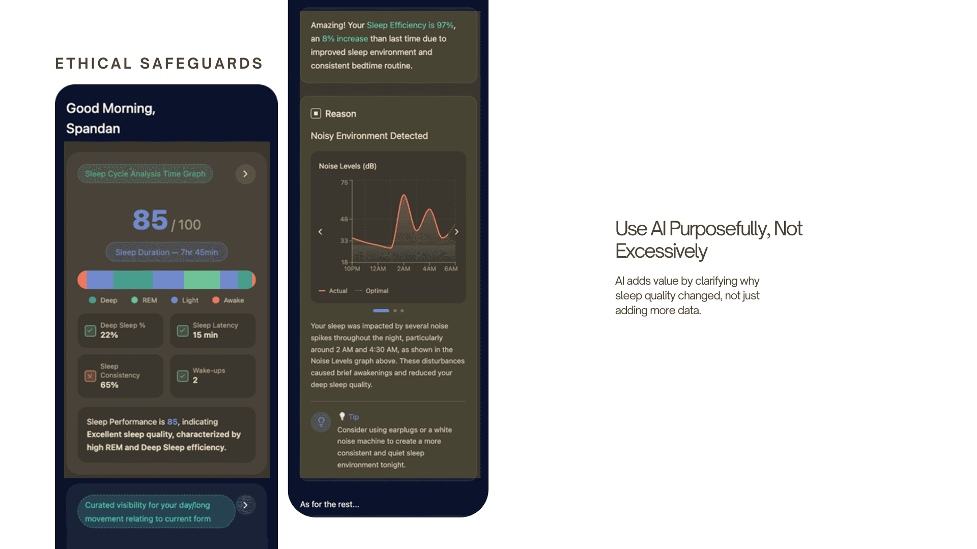 Designed a mobile Sleep Index dashboard unifying sleep, activity, and recovery data, with user-research-driven architecture and interactive trend prototypes in Figma.