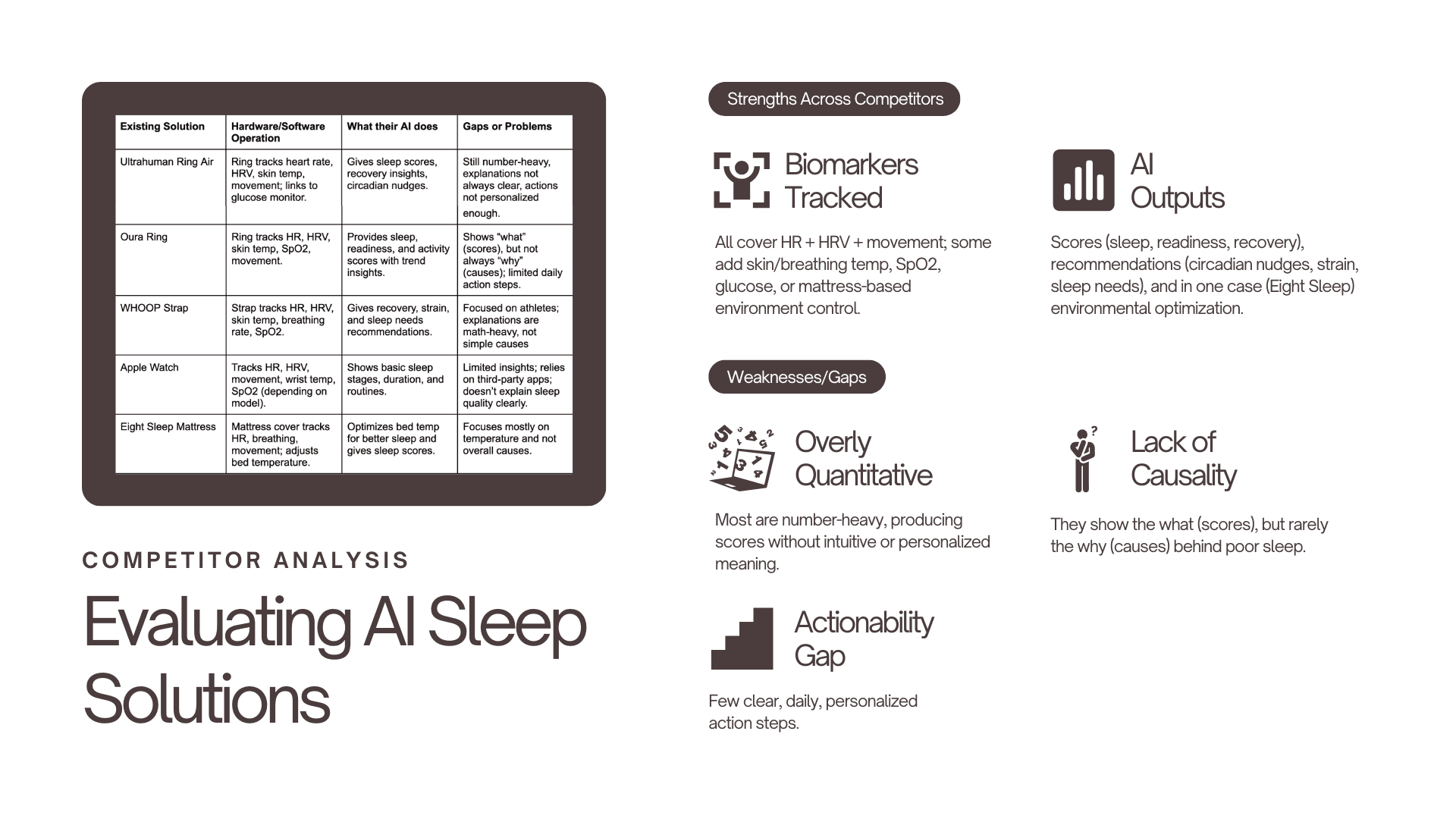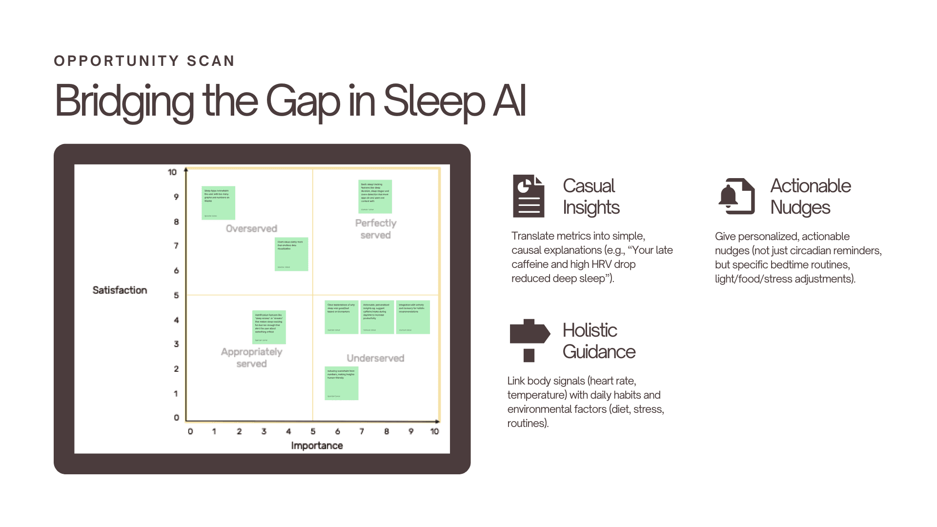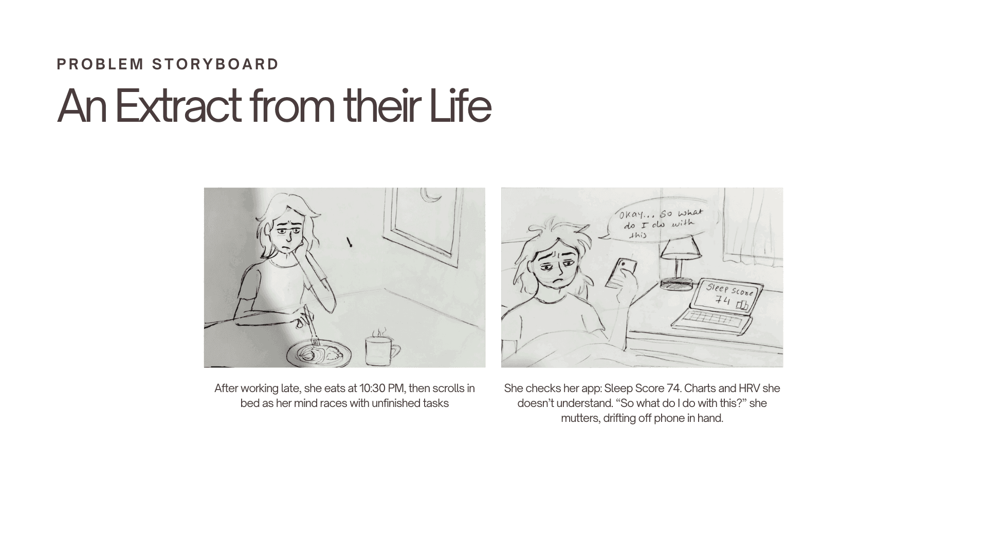 Designed a mobile Sleep Index dashboard unifying sleep, activity, and recovery data, with user-research-driven architecture and interactive trend prototypes in Figma.
